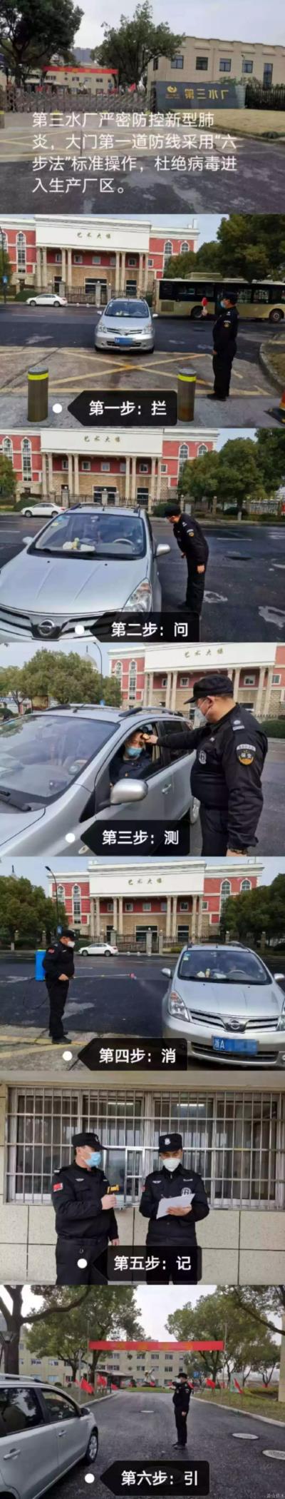 为保障安全供水,公司下属各水厂对进出人员、车辆进行严格管控,采用拦、问、测、消、记、引的“六步法”标准操作,同时加强生产巡查。