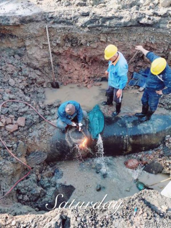 1月2日清晨7时,热线接到用户反映第二水厂门口水管破裂,抢修人员立即前往现场查看,经确认是DN1000管自然破损,为尽可能减少对居民用水的影响,抢修人员检测漏点、关闭阀门、修复管道,供水调度认真分析、及时调度,每一步都在与时间赛跑,最终圆满完成了抢修任务。