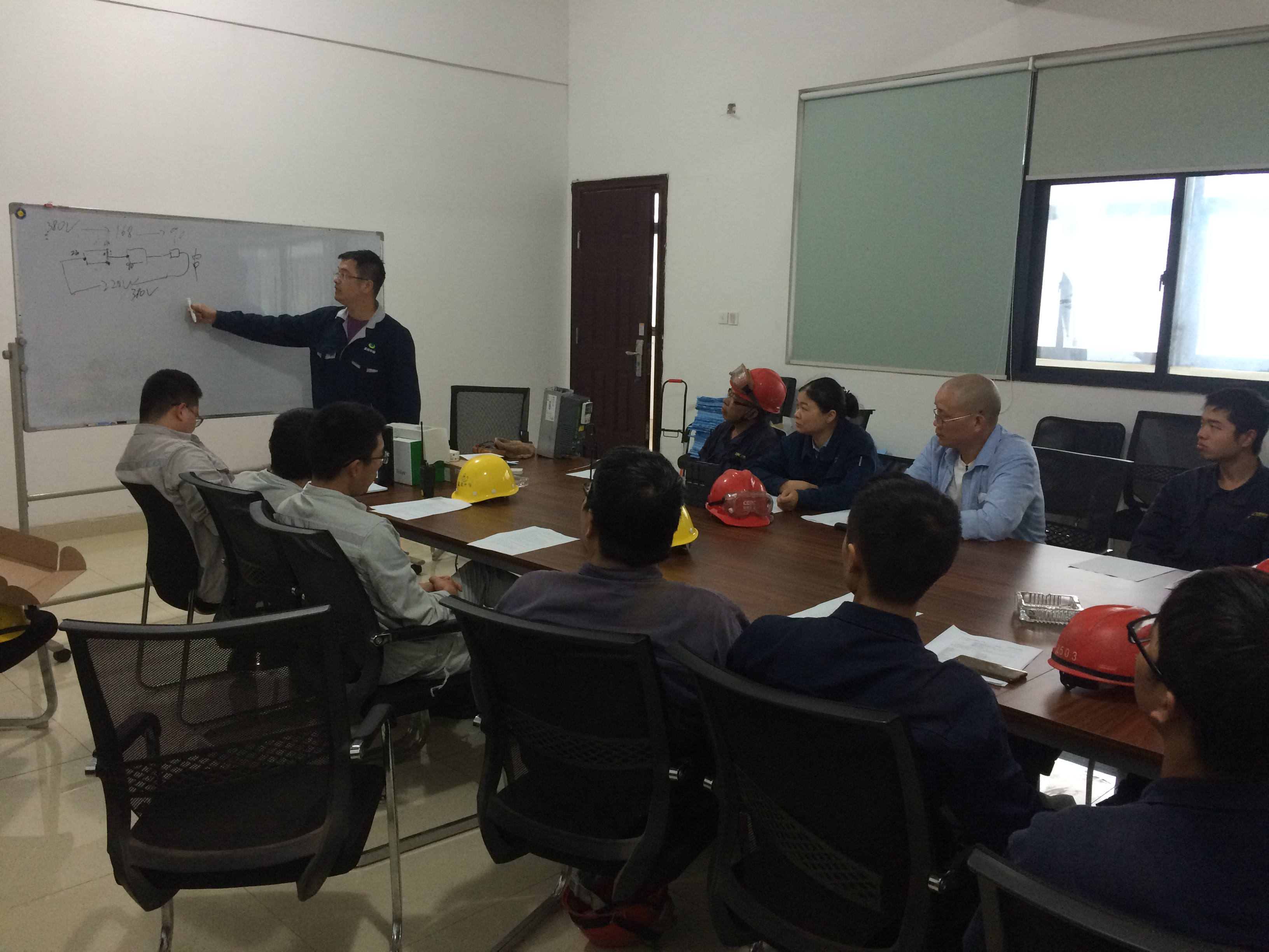 杜工根据我公司的实际情况科学拟定了培训内容,分别从公司的电路特色、变频器操作原理及三相电动机的磁阻原理分析这三大点进行培训授课。