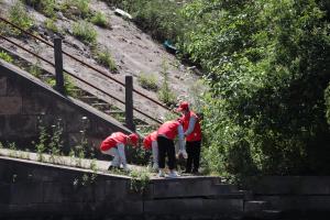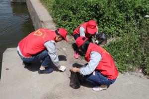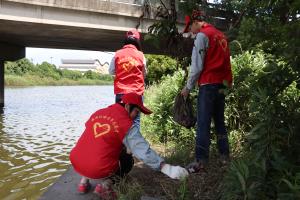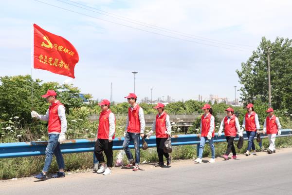 在世界环境日即将到来之际,蓝成环保党支部联合公司团总支,开展了“青春作伴巡河去”活动,巡河队员们身着红色志愿服,带着小红帽,走在十七工段直河旁边。