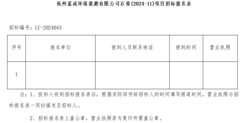 二、招标项目:杭州蓝成环保能源有限公司石膏(2024-11)项目。