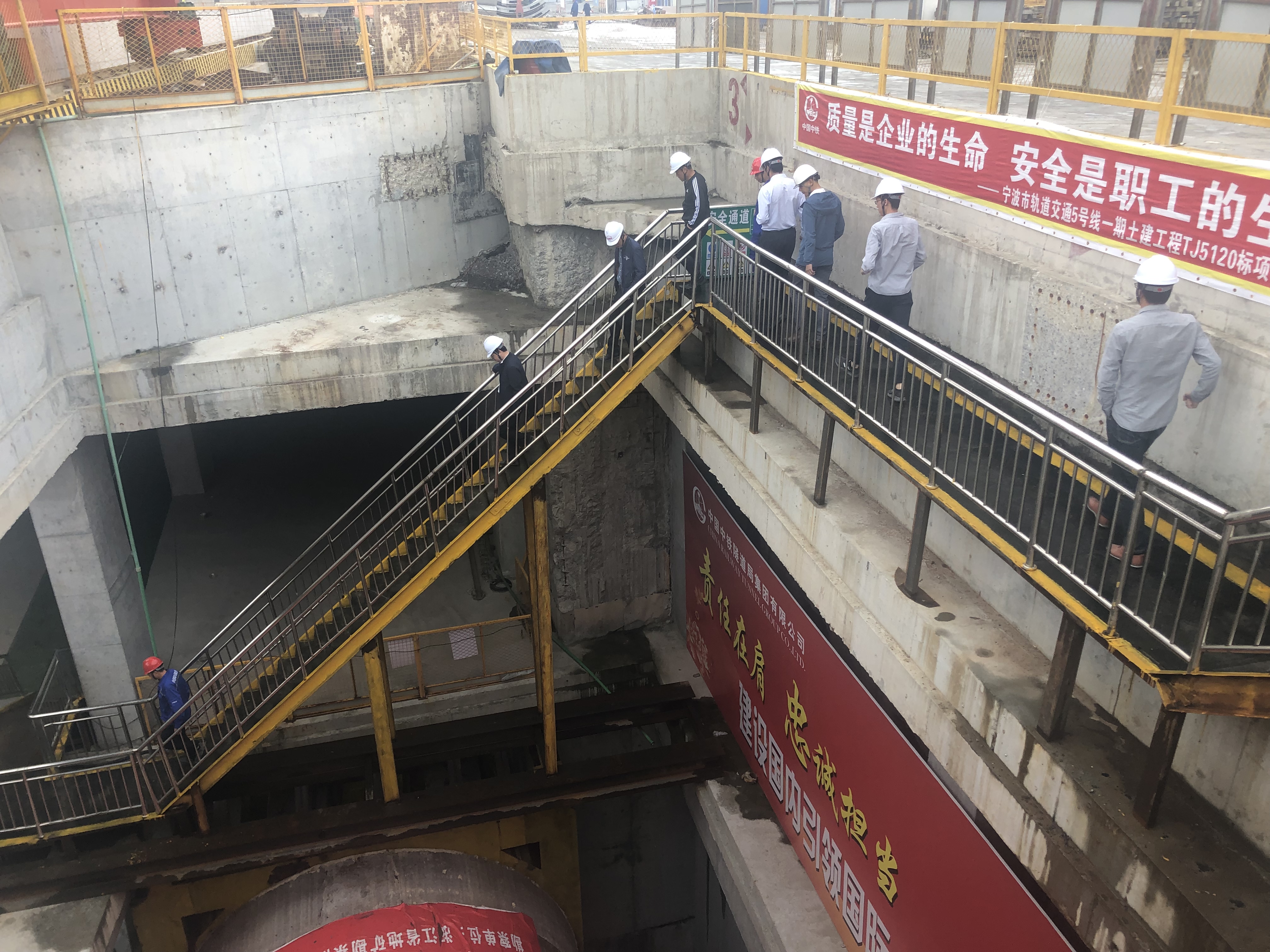 在地铁站相关工作人员的带领下,考察小组参观了宁波地铁5号线盾构始发,车并与其管理人员交流盾构始发加固设计方案,了解了地铁盾构施工相关情况。并赴宁波地铁钱湖南路站参观深基坑开挖,学习深基坑支撑技术。