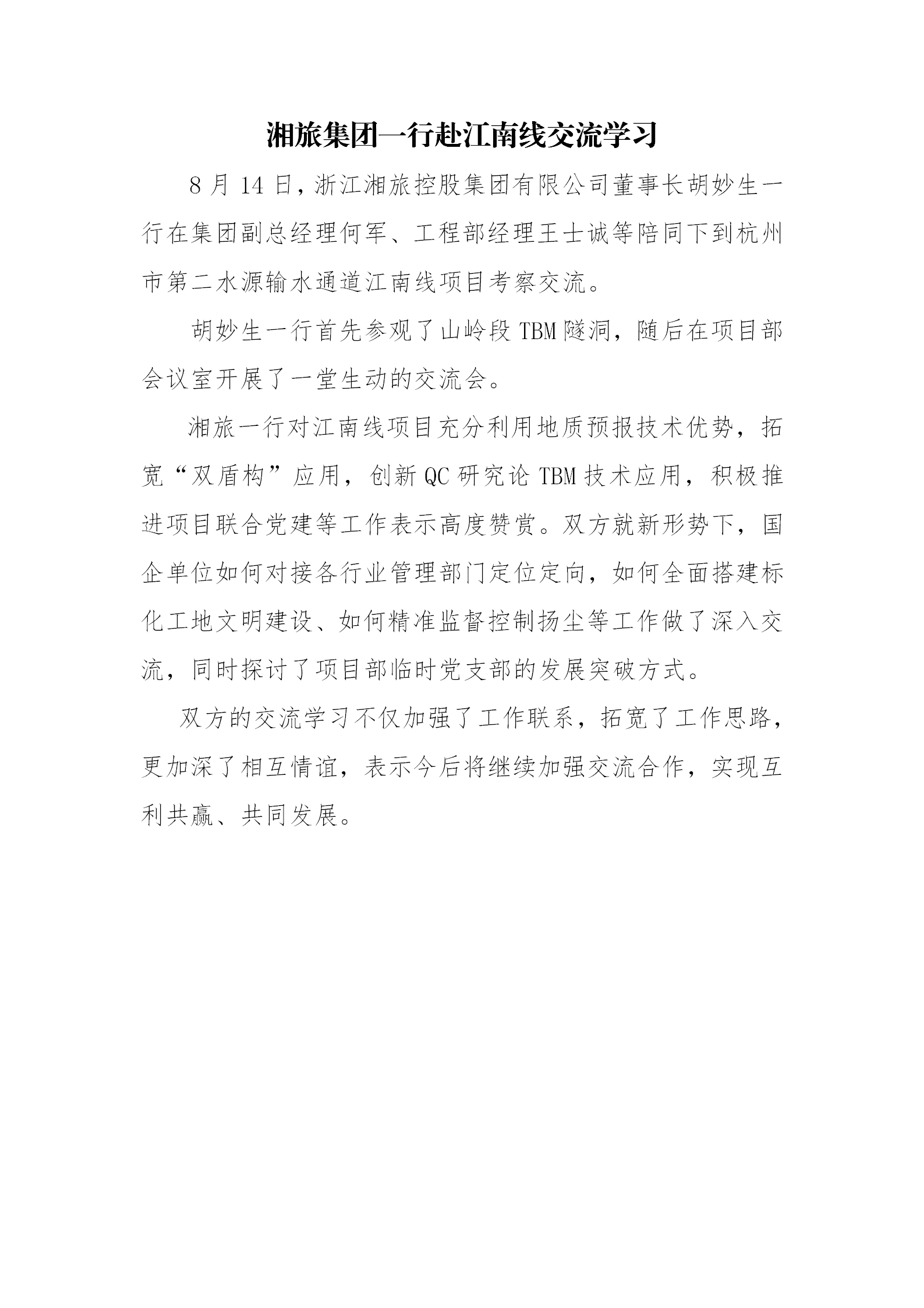 湘旅集团一行赴江南线交流学习