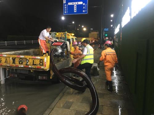 污水公司北片运管中心紧急启动防汛排涝应急预案,抢险应急强排小组雷霆出动,对钱江世纪城国博中心、奥体中心亚运三馆、盈丰路与金鸡路交叉口、鸿宁路与皓月路交叉口等世纪城易沉易积水点进行强排,保障道路畅通和行人出行安全。