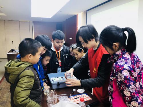 在实验环节里,供水科普人员现场制作了简易版“混凝沉淀池”,直观展示水处理效果。当浑浊的源水通过药剂的反应,使泥水分离的那一刻,孩子们因这神奇的化学反应而更加聚精会神。