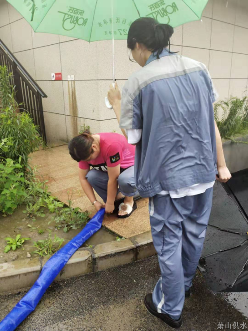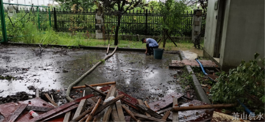 工作服湿了,就换回自己的衣服,然而自己的衣服也是坚持不了多久。在取水的路上,我发现出厂水水房门前的空地积水严重,下水口堵塞,在微信群里反映了之后,同事们立马赶来解决。不到二十分钟,积水问题就迎刃而解。瓢泼大雨中的争分夺秒,是对工作的负责,更是对百姓的承诺。