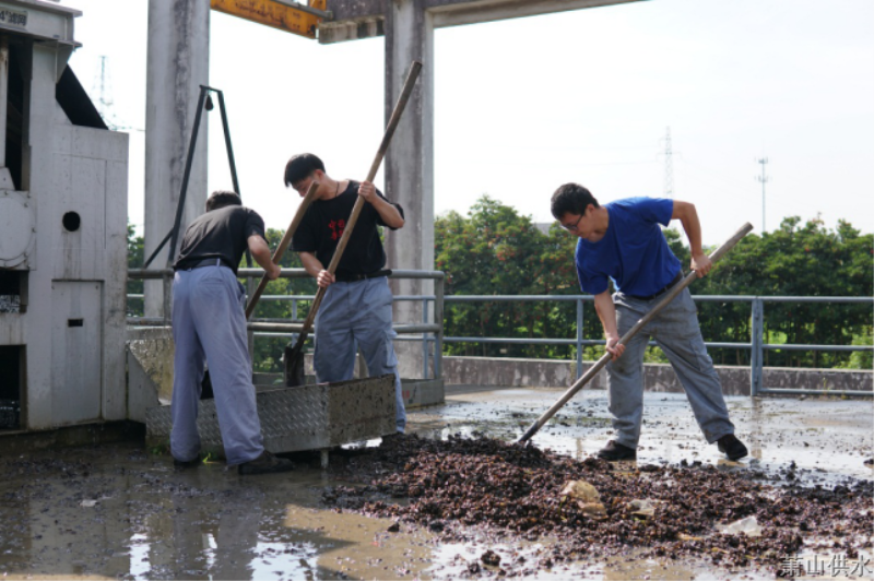 高峰供水期间,三江口取水泵站一派热火朝天,面对大量繁重的清理任务,机修人员也来帮忙,人多力量大,小伙子们团结一心,形成合力之势,高效完成清理工作,共同保障泵站的平稳生产。