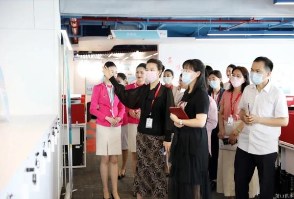 坎山巾帼岗一行在长龙航空客舱部总经理吴园等领导的陪同下,首先参观了长龙航空的AOC大厅、飞行机组准备区。随后,一行人来到“翎龙”巾帼岗文化走廊、荣誉展示区,了解了“翎龙”巾帼岗的创建情况、发展历史、抗疫期间所做的贡献,以及在保障旅客、提升品牌等方面的建设工作。