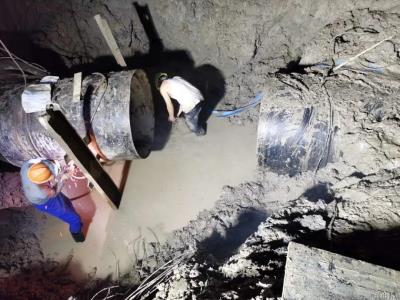 施工现场齐心作业,割接工作提速推进。风里雨里,他们的身影奋战在一线,只为尽早恢复百姓的正常用水,这就是“乘风破浪”的供水人!