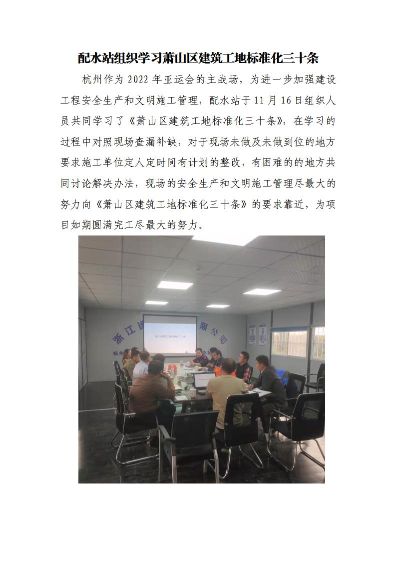 配水站组织学习萧山区建筑工地标准化三十条