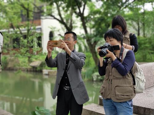 实践研讨期间,摄影“大咖”们各展身手,带来“两岸好山青嶂列,一泓新水绿罗铺”的视觉盛宴。大家共享美图,互相学习指点构图技巧,并就如何提高摄影水平、充分发挥图片宣传影响力进行了讨论。