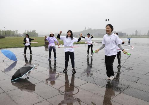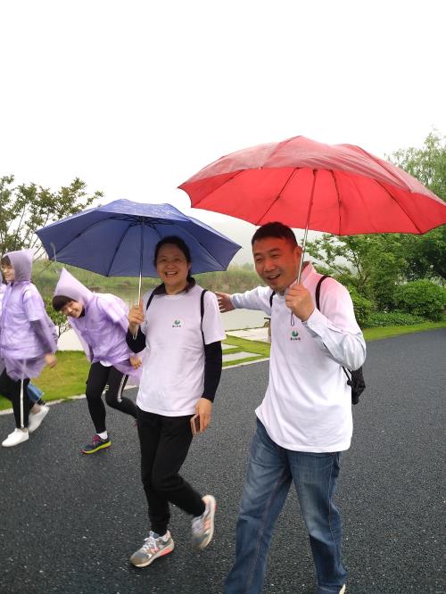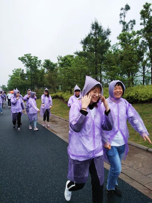 雨水浇不灭热情,阴霾遮不住笑脸。上午9时许,80余名集团干部职工从湘湖金融小镇出发,开始5公里毅行,途经定山广场、湘湖三期花海、摇橹船环行一周至达湘湖金融小镇会客厅后结束,时长约1小时。