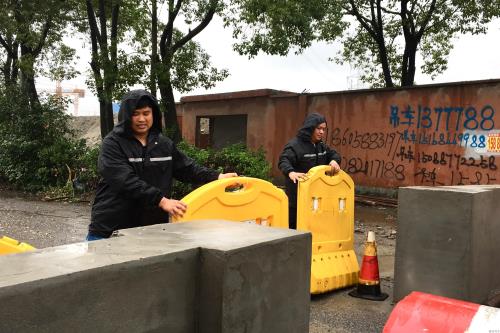 演练模拟极端天气下泵站供电线路突然断电,导致雨水输送设施停运,泵房周边积水严重,随时有雨水满入危险的突发情况。参演人员迅速调集应急物资,在泵站积水处铺上麻袋,并启用抽水泵对严重积水处实施强排措施。