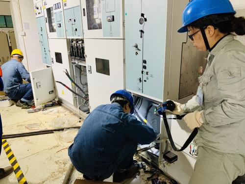 10月28日,按接两条高压进线,一条变压器出线,制作高压电缆头,以及连接变压器与低配电柜的铝排桥架。此外,做好相关设备电器试验,检测设备是否正常运行,完成最后扫尾工作,顺利通电通水。更换后的低压配电柜自带小型发电机,可为突发断电提供应急之需。
