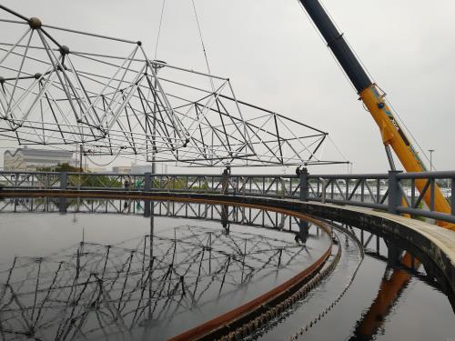 自二期扩建项目开展以来,临江厂积极协调工程各参建单位,立足提速提质,聚焦重点环节精准靶向推进,坚持将工程做实做细。截至目前土建主体结构全部完成,通过主体结构验收;外立面装修基本完成,现场工艺管道和雨污水管道已全部完成,设备安装总体完成90%。2020年临江水处理厂将继续紧抓扩建工程建设安全、质量和进度,力争2020年6月投产运行,实现废水治污扩容。