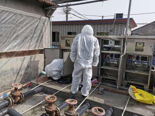 事实上,穿戴整套防护服后,不只是行动不便,更是又“热”又“重”。因为行动不便,原本5分钟能走到流量计的路程,现在得花上10分钟。由于防护服内潮湿闷热,护目镜很快就被水珠模糊视线,抄表员需要相互帮忙,小心擦拭清理护目镜,看清流量数字,确保数据无误。