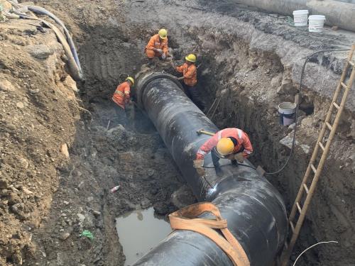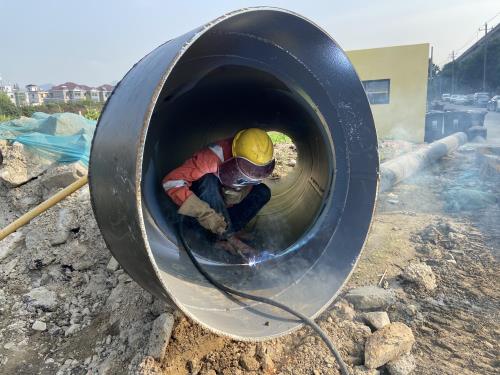 为配合时代大道高架南延工程建设,持续助力打好“22688”交通大会战,10月10日22时30分,经过14.5个小时紧张施工,污水处理公司义桥泵站DN1000出水管迁改割接顺利完工,比原计划提前9.5个小时。
