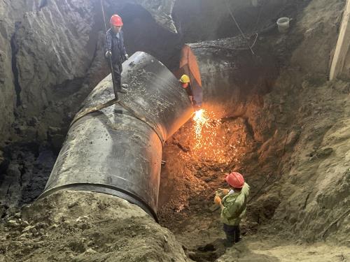 面对割接管内留存污水量大(4100吨),停水影响范围广(10个镇街),施工时间紧(计划30小时)等困难,南片运管中心不断完善迁改方案,积极配合施工人员现场踏勘,组织停水通知发放,全员出动落实水量调度、管线巡查、施工技术安全保障,从基坑开挖到管道泄压,从污水抽排到通风割接,28小时不间断作业,比原计划提前2小时,最终打赢抢时间、保安全、保质量的双割接攻坚战。