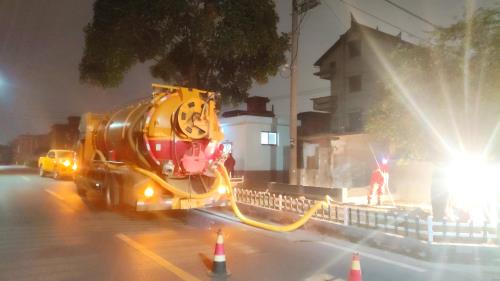 当天下午3时,东片运管中心接讯,瓜沥泵站DN1400管排气阀井故障。东片运管中心立即启动应急预案,前往现场踏勘,拟定抢修方案,使用槽罐车将污水转运至瓜沥泵站。故障抢修期间,瓜沥镇、衙前镇、红垦农场、萧山机场等区域相关涉水企业均停止污水输送。经过7小时连续施工,排气阀井抢修顺利完成并恢复通水。