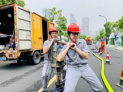 演练模拟强降雨天气,雨水管道出现满溢。应急队伍接讯后及时响应,各小组分工明确,预警、后勤保障、救护保障、强排作业各环节有序开展,疏通雨水管网,切实达到演练效果。