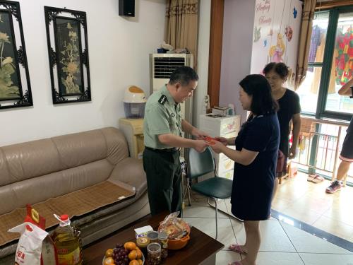 8月1日,北干街道人武部长徐水泉走访慰问检测公司员工、军嫂韩婷,向她送去组织的关怀和温暖,并致以节日的问候和美好祝福。