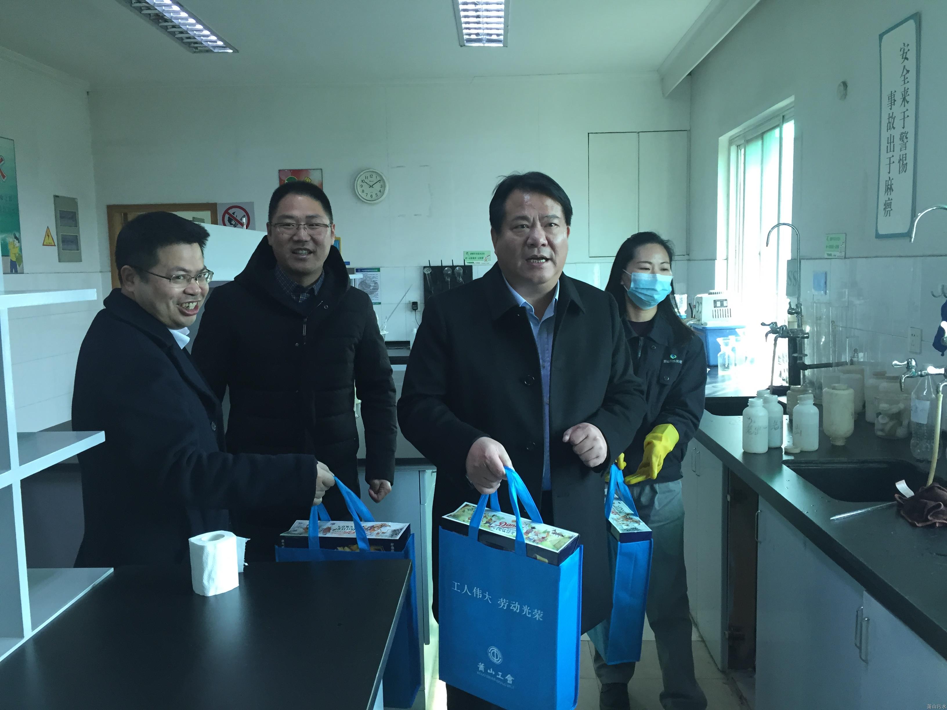 洪松法等一行走访了钱江污水厂化验室,详细了解了污水厂当班人员的日常生活和健康状况,感谢他们在一线岗位默默无闻的付出,确保了节日期间污水处理正常运行,为全区人民送上一个平安、欢乐、祥和的新春佳节。
