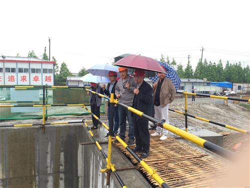 4月20日下午,市建委村镇处处长胡绍进一行不顾阵阵春雨,深入钱江污水处理厂改扩建工程一标、三标段建设工地,就安全文明施工、分部工程质量、工程进展及汛期施工准备等进行实地检查指导,并对相关施工安全问题做了点评和技术交底。