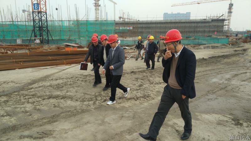 在钱江污水处理厂,集团副总经理徐宁军一行实地踏看了该厂提标扩建工程三期生反池、二沉池等新建构筑物,检查了工程施工质量、施工管理台帐、安全员及监理等内容,着重对危险性较大的分部、分项工程的技术方案、安全措施是否到位等情况作了详细询问并指正。