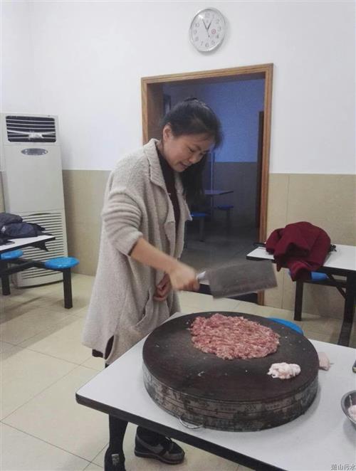 大家分工明确,和面的和面、切菜的切菜、剁肉的剁肉,拌陷的拌陷,动作娴熟,有条不紊。