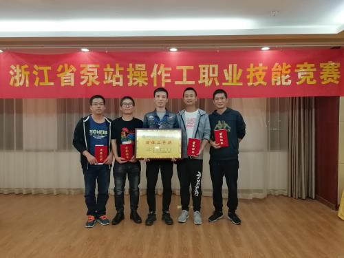 据了解,本次竞赛由理论知识和操作技能两部分组成,按3:7的权重计入总分,其中操作技能竞赛涵盖水泵机组启动和停止控制操作、双电源切换、闸门闸阀的保养、液位控制等内容。污水公司精心组织,赛前集训,积极备战,在泵站操作工岗位上比真知、亮绝活,展示萧山排水风采。连续两天的赛场上,四名参赛选手热情高涨。笔试模拟,对每一道题都细细作答;实际操作,对每一个环节都认真把握,敢打敢拼,充分展示了个人的技艺和水平。代表队成员周恩道、蒋小伟分别荣获个人二、三等奖,同时被竞赛组委会授予“浙江省泵站操作技术能手”称号,夏魏峰、余凯则荣获“浙江省泵站操作优秀选手”称号。