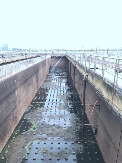 10月13日,钱江水处理厂对二期曝气池A组进行全面冲刷清泥,将原有老旧曝气器替换为新型盘式微孔曝气器,进一步提高曝气效率,降低曝气能耗,为全厂节能降耗工作的开展做好前期准备工作。