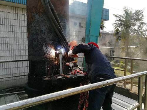 接电后,机修人员立即前往党湾泵站,关闭4#水泵电源并起吊水泵进行检查,发现水泵冷却循环管道腐蚀破裂,须立即更换。在制定维修方案并做好安全防护措施后,机修人员对破裂的冷却循环管进行切割,重新量取材料尺寸并顺利焊接。最后,受检水泵起吊安装归位,试运行检查“术后”情况,未发现漏水和污水翻涌现象。