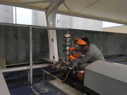 6月15日,临江厂机修组顶着小高温,历时一天,及时、准确、高效地完成芬顿加药区全体药剂泵对中检修工作。